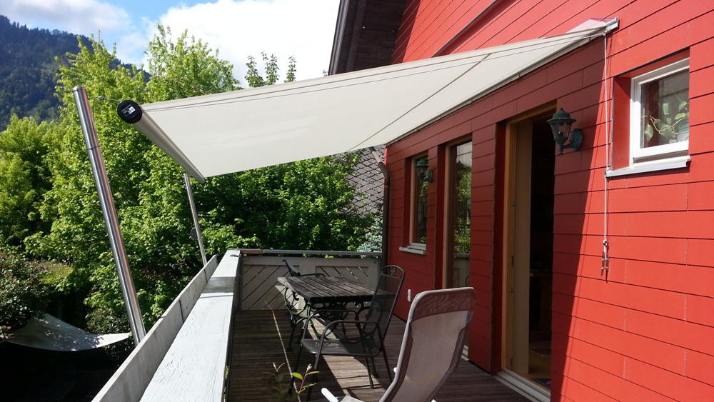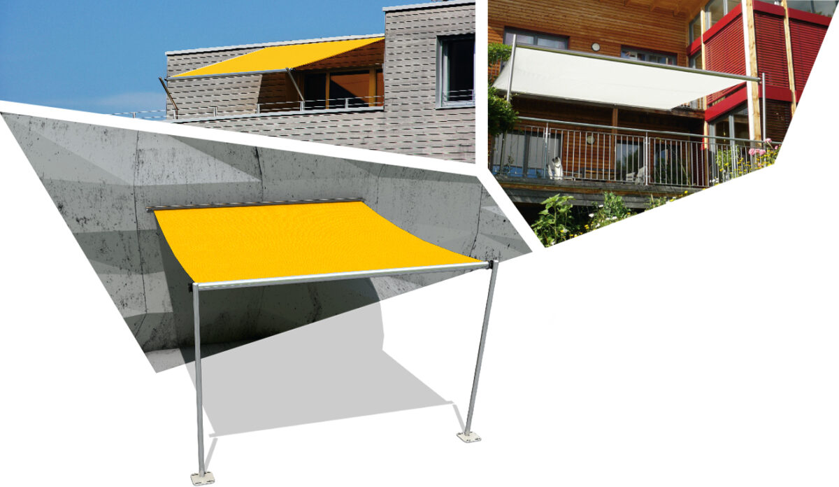 Anders als bei einer Markise übernimmt die Tuchwelle die Funktion des Ausfallprofils und der Welle. Dies bedeutet das die erforderliche Tuchspannung und das aufrollen des Segels auf einfache weise kombiniert sind.